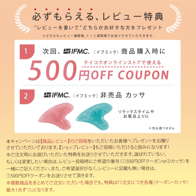 主人のお誕生日にプレゼントしました。 リカバリーサポーター (ふくらはぎ用)がとてもよかったようなので、会社用にビジネス靴下にしました。 冷えやむくみが少し改善しているみたいです。 我が家では、犬もラディカのイフミックウエアを愛用しています。 私もハイソックスを購入する予定です。 レビュー特典②カッサ希望